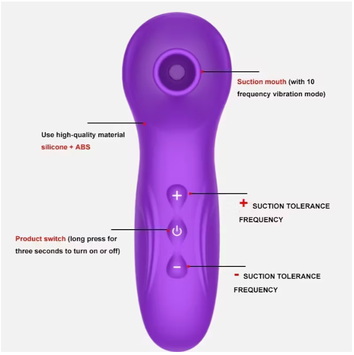 Juguete sexual vibrador 10 MODOS con succión GOLD2 / PINK Color / alimentado por batería integrada, con carga USB. / R17