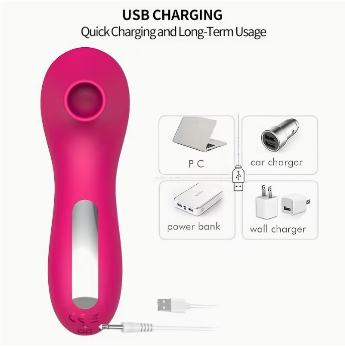 Juguete sexual vibrador 10 MODOS con succión SILVER , alimentado por batería integrada, con carga USB. / R15