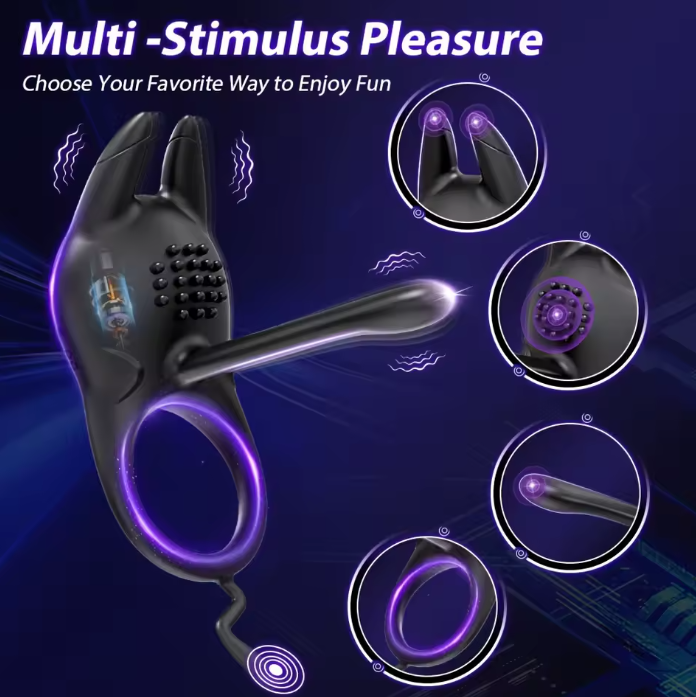 Vibrador estimulante con anillo y linea de penetración con multiples modos de vibrar / E6